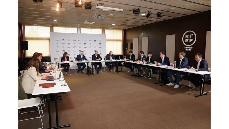 La Ciudad del Fútbol de Las Rozas, concretamente la nueva sala Sidney 2023, que homenajea a la selección española femenina campeona del mundo el pasado verano, fue el escenario de lo que se puede catalogar como una cita histórica para el fútbol español. El presidente de la RFEF, Pedro Rocha; el presidente de LALIGA, Javier Tebas, y la presidenta de Liga F, Beatriz Álvarez, los tres organismos que engloban todo el fútbol de nuestro país, sellaron este 21 de mayo de 2024 una comisión que, en resumidas cuentas, controlará el funcionamiento del fútbol español de común acuerdo.