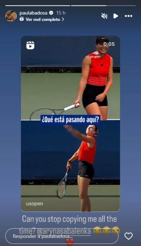 "¿Puedes dejar de copiarme todo el rato?", respondió Badosa en una historia de Instagram, un texto que acompañó con varios emoticonos de una cara riéndose.