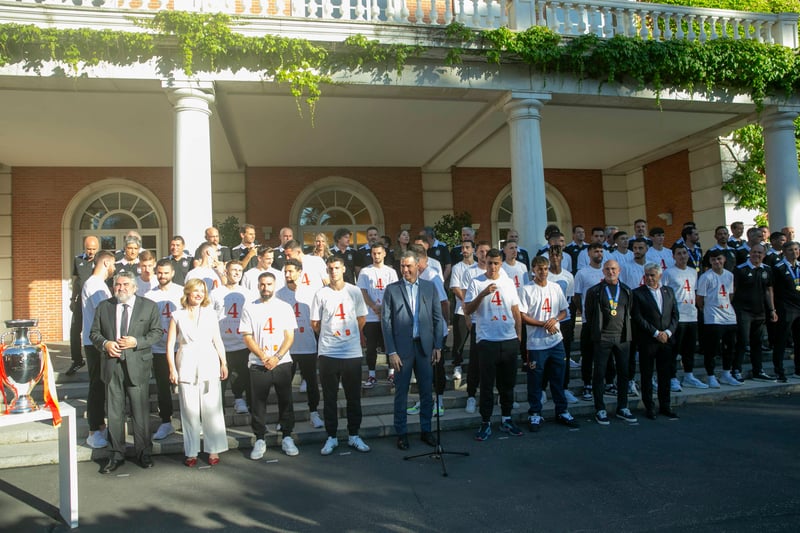 La Selección española aterrizó este pasado lunes en el aeropuerto de Barajas y antes de llegar a Las Cibeles ofreció la Eurocopa a diferentes organismos. En primer lugar la Selección española pasó por el Palacio de la Zarzuela para entregarle una camiseta al Rey Felipe VI y enseñarle la Eurocopa. Posteriormente, la Selección española pasó por la Zarzuela para una recepción oficial con Pedro Sánchez, presidente del Gobierno.