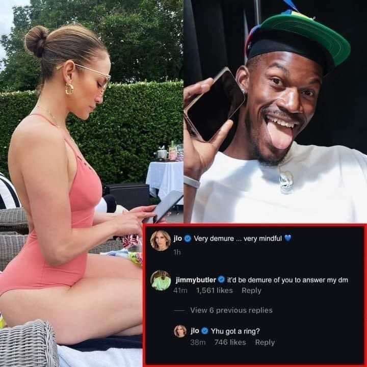 La cantante publicó un vídeo que acompañó con el texto: "Más recatada... más consciente", a lo que Butler comentó: "¿Sería muy recatado de tu parte responder a mi DM (mensaje privado)?". JLO le siguió el juego y respondió su comentario: "¿Tienes un anillo?".