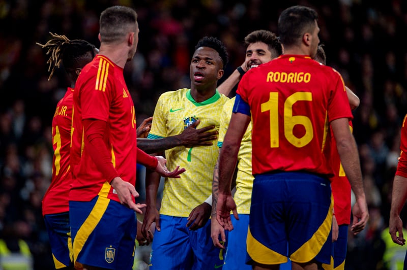 Pero sin duda, lo más criticado en el vídeo son las lágrimas de Vinicius en la comparecencia antes del España-Brasil de la semana pasada, donde jugador del Real Madrid rompió a llorar hablando del racismo que sufre: "Que mal que estoy ganando millones, me gritan cuatro tontos en un estadio de fútbol, mientras se seca las lágrimas en su reloj de cien mil euros. Es un jugador irrespetuoso, poco deportivo, victimista a unos niveles patéticos, y que luego encima se dedica a burlar".