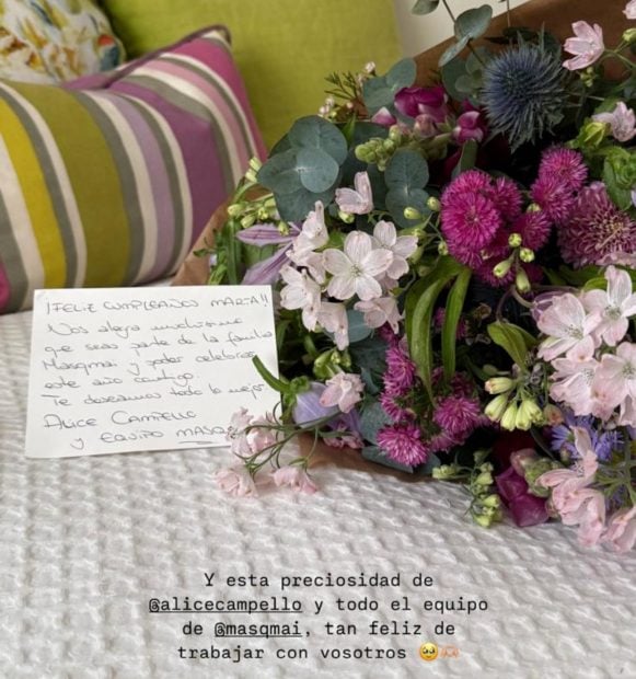 Martín de Pozuelo compartió recientemente en sus redes una imagen de un ramo de flores enviado por Alice Campello, quien le felicita su cumpleaños, algo que indica una buena relación entre las dos. Además, son varias las colaboraciones de la joven influencer con la marca de la italiana, por lo que la conexión empresarial entre María Pombo y Alice Campello parece clara, uniéndoles mucho más que ser la ex y la pareja de Álvaro Morata.