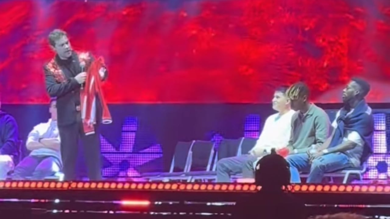 En seguida, los hermanos Williams que ya venían preparados al show, sacaron una bolsa para entregarle un regalo a Juan Dávila. Una camiseta de cada uno firmada fue el obsequio, que el presentador recogió con afecto, aunque poco le duró, ya que continuó con su sketch.