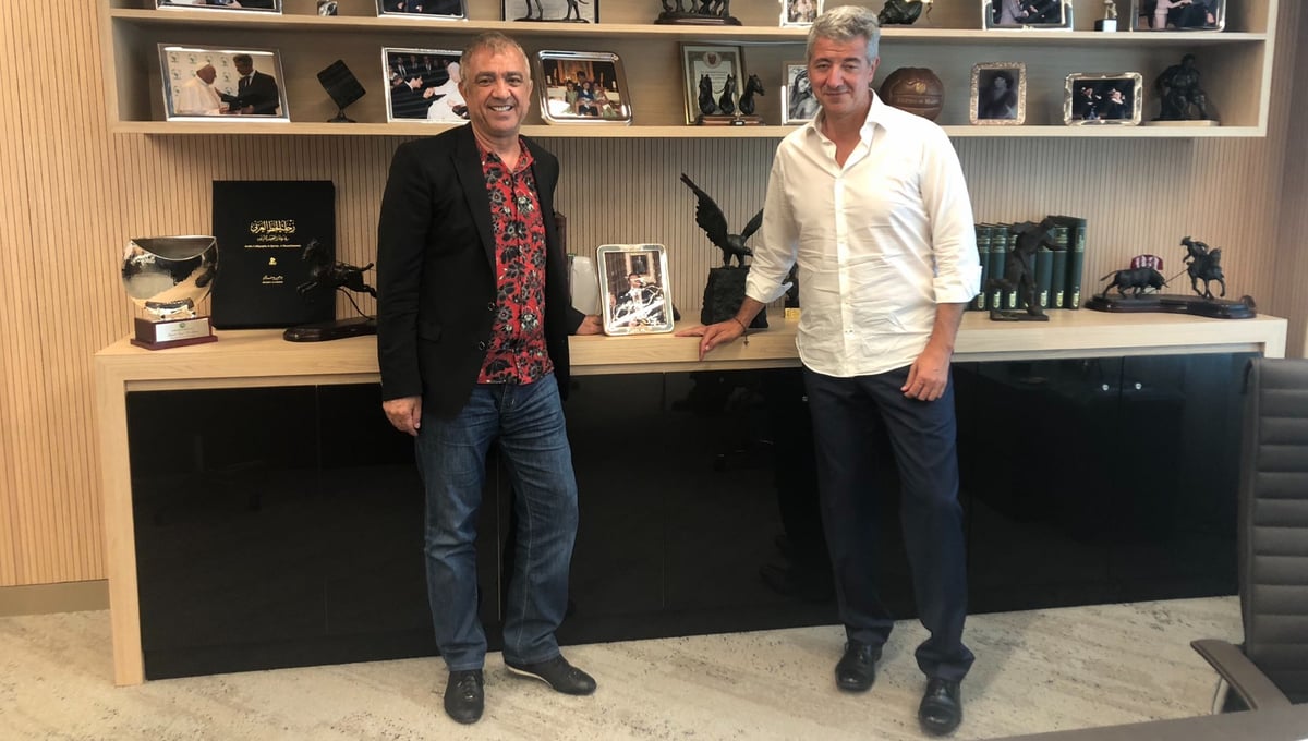 El representante Bayram Tutumlu posa junto a Miguel Ángel Gil Marín en el despacho del consejero delegado del Atlético de Madrid.@BayramTOficial