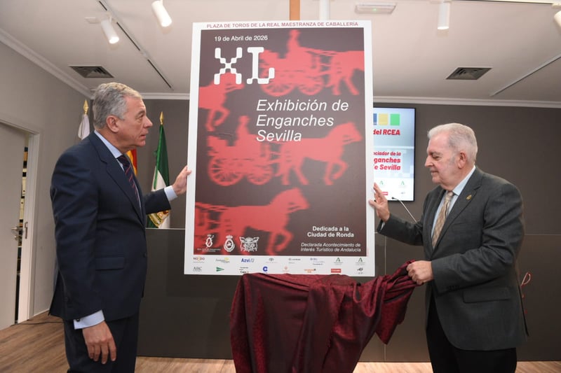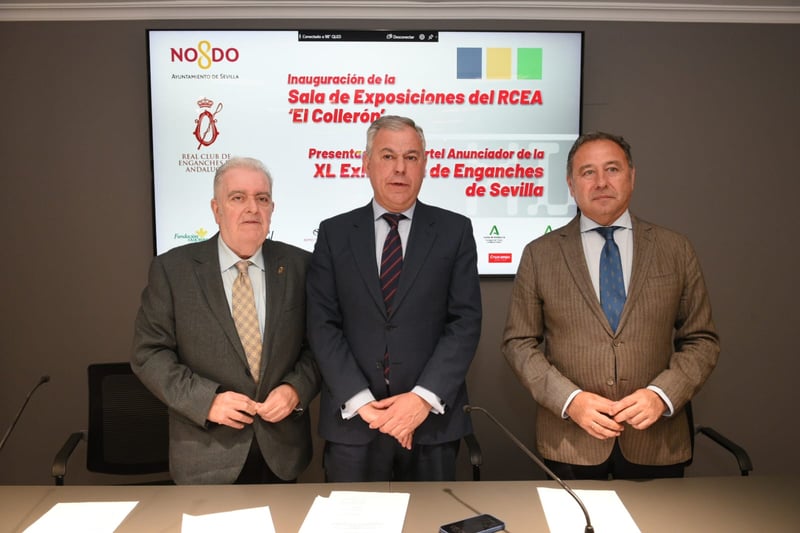 Esta mañana se ha dado el pistoletazo de salida a los actos del proyecto Sevilla, Capital Mundial del Enganches 2026 con la presentación del cartel anunciador de la XL Exhibición de Enganches de la Feria de Sevilla, todo enmarcado en el acto de inauguración de la Sala de Exposiciones El Collerón, del Real Club de Enganches de Andalucía. El acto, que ha contado con la participación del alcalde de Sevilla, José Luis Sanz; el delegado del Gobierno, Ricardo Sánchez; la alcaldesa de Ronda, María Paz Fernández; el presidente del Pleno del Ayuntamiento y delegado de Fiestas Mayores, Manuel Alés; el director de la Fundación Caja Rural del Sur, Emilio Ponce, los directores generales de Agricultura y Turismo, Daniel Quesada y Elena Baena, respectivamente, entre otros.