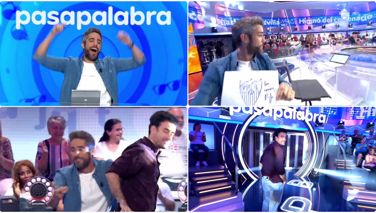 "Aviso ya de que ésta que viene ahora es una de mis canciones preferidas de toda la historia. Año 2005", advertía Roberto Leal, natural de Alcalá de Guadaíra, antes de que sonase las inconfundibles palmas con las que arranca el Himno del Centenario del Sevilla FC. El equipo azul, a la tercera pista y después de sonar un trocito más de la composición, la adivinó y el tema de El Arrebato sonó a todo volumen en Pasapalabra ante los gestos entre bromas del bético Rafa Castaño tapándose el rostro para no ser participe del momento.
