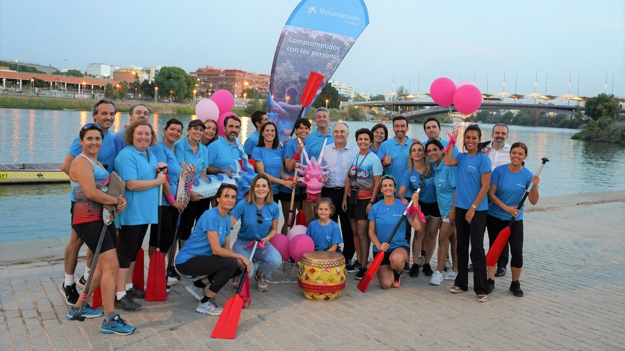 De este modo, los voluntarios de CaixaBank compartieron una tarde de navegación con el Club Deportivo Piragüismo Sevidragón y su equipo BCS Sevilla, integrado por personas que han superado el cáncer de mama. La disciplina deportiva Barco Dragón de la Federación de Piragüismo es la única que cuenta con una categoría exclusiva para personas que han superado el cáncer de mama, denominada BCS (breast cancer survivor).