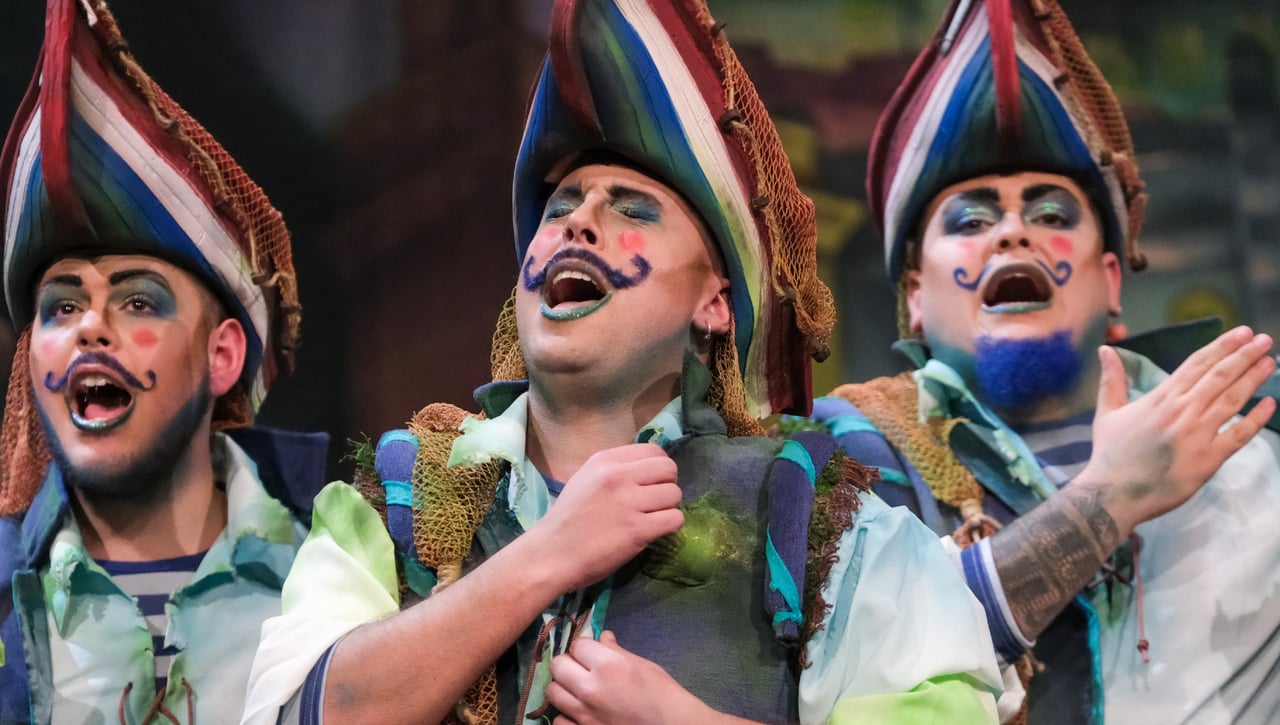 01:45 h Comparsa 'Una excusa divina'. Juan Fernández regresa cinco años después de tomarse un periodo de reflexión tras el varapalo que recibió la comparsa 'Dios salve a la reina', que no consiguió superar el primer corte del Concurso.