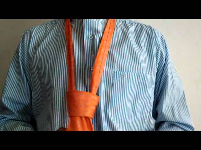 - Toma la parte ancha de la corbata y colócala sobre la parte estrecha, justo debajo del cuello. Luego, pasa la parte ancha por detrás de la parte estrecha, formando así un nudo simple.