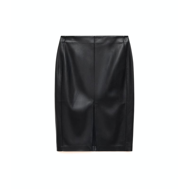 Una falda efecto piel que queda bien a todo el mundo y es perfecta para resaltar tu silueta. En Mango tienen una espectacular en color negro y a muy buen precio.
