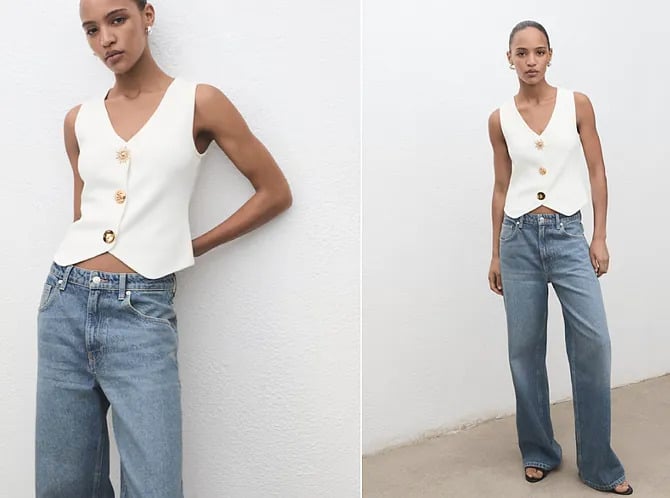 Ya en Mango puedes encontrar un chaleco que te puedes poner desde el mismo día que lo compres, puesto que sirve tanto para verano como para otoño. Un chaleco blanco que destaca por sus botones dorados.