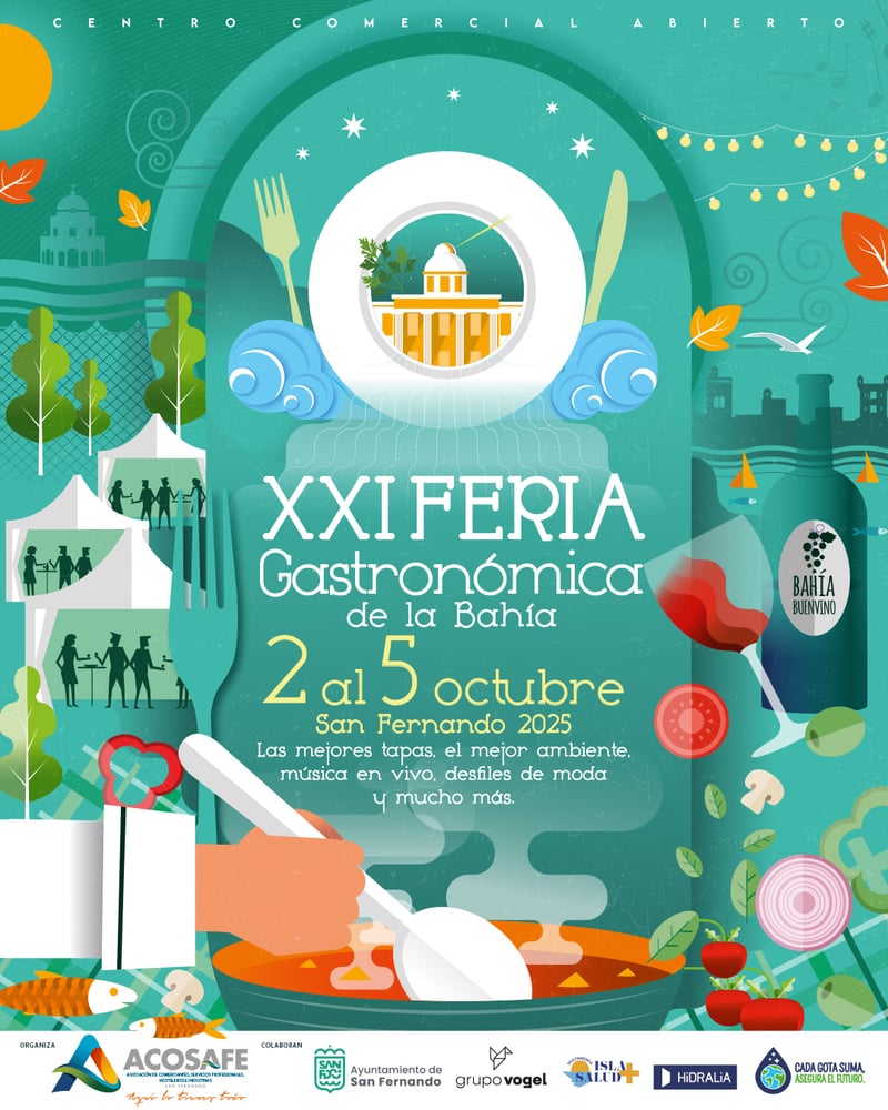 Del 2 al 5 de octubre tendrá lugar en el parque Almirante Laulhé de San Fernando la Feria Gastronómica de la Bahía. Un evento que ha tenido que cambiar sus fechas debido a cuestiones técnicas, ya que suele ser siempre sobre la última semana se septiembre. La propuesta combina las tapas con música en directo, actividades para todos los públicos y desfiles de moda.