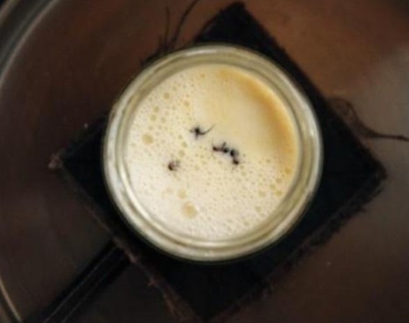 CUATRO HORMIGAS EN UN FRASCO CON LECHE