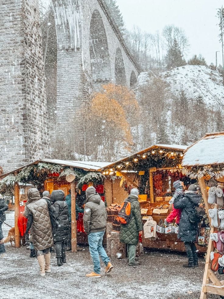El mercadillo se destaca por su ambiente íntimo y acogedor, diferente del ruido de los grandes mercados urbanos. En él se pueden encontrar artesanías locales, adornos navideños, dulces típicos alemanes y bebidas calientes, todo en un entorno rodeado de bosques y montañas. Su ubicación, bajo el viaducto iluminado, proporciona una imagen espectacular que atrae cada año a turistas de toda Europa, tanto para realizar compras como para disfrutar del ambiente festivo y del paisaje invernal.
