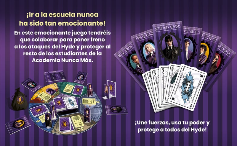 Se trata de un juego de mesa cooperativo, para jugar en pareja o en grupo de cuatro personas, y que requiere 20 minutos aproximadamente por partida. "Meteos en la piel de vuestros personajes favoritos para intentar frustrar una monstruosa amenaza que ha estado sembrando el terror en las cercanías de la Academia Nunca Más. En este emocionante juego tendréis que colaborar para poner freno a los ataques del Hyde y proteger al resto de los estudiantes" es la descripción del juego, que se puede encontrar en Amazon o diferentes tiendas de juego y que tiene un precio de 24,99 euros.