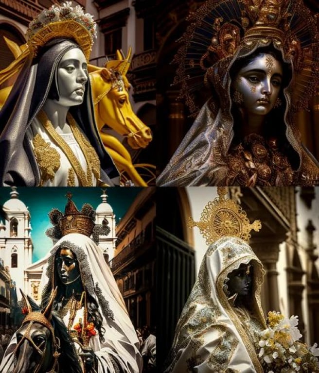Para conseguir las ilustraciones, en Nius han utilizado la IA Midjourney, donde concretamente buscaron las palabras ‘Semana Santa Sevilla Virgen Macarena’. Entre los resultados se encuentra una virgen con los ojos negros y otras con expresiones de temor.