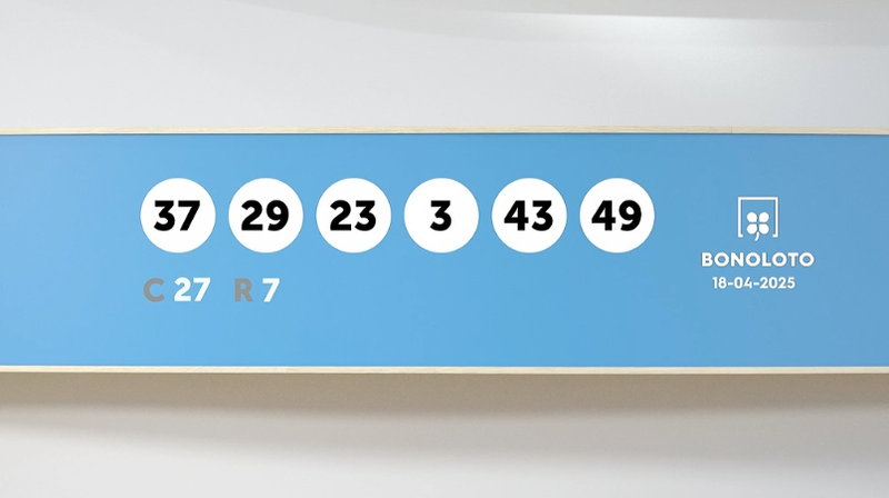 Los números agraciados en el sorteo de la Bonoloto del viernes 18 de abril de 2025 son los siguientes: 37, 29, 23, 3, 43, 49. El número complementario es el 27 y el reintegro el 7. En el sorteo de ayer hubo un acertante de primera categoría que se llevó casi dos millones de euros. Además hubo 80 acertantes de tercera categoría que se llevaron cada uno más de 2.600 euros. El bote de hoy es la parte proporcional de la recaudación.