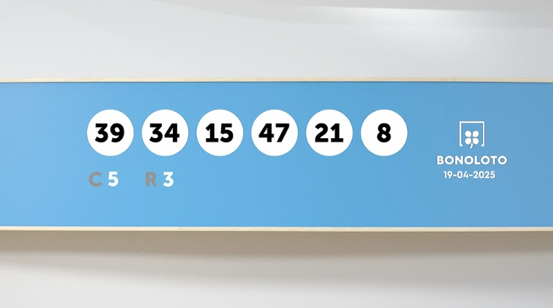Los números agraciados en el sorteo de la Bonoloto del sábado 19 de abril de 2025 son los siguientes: 39, 34, 15, 47, 21, 8. El número complementario es el 5 y el reintegro el 3. En el sorteo de ayer hubo un acertante de primera categoría que se llevó más de 280.000 euros. Además hubo un acertante de segunda categoría que se llevó más de 105.000 euros. El bote de hoy es la parte proporcional de la recaudación.