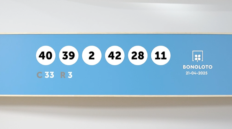 Los números agraciados en el sorteo de la Bonoloto del lunes 21 de abril de 2025 son los siguientes: 40, 39, 2, 42, 28, 11. El número complementario es el 33 y el reintegro el 3. En el sorteo de ayer no hubo acertantes de primera categoría ni de segunda categoría, pero sí que hubo 51 acertantes de tercera categoría que se llevaron más de 3.400 euros cada uno. El bote de hoy es de 900.000 euros.