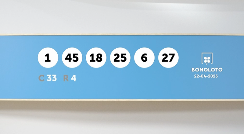 Los números agraciados en el sorteo de la Bonoloto del martes 22 de abril de 2025 son los siguientes: 1, 45, 18, 25, 6, 27. El número complementario es el 33 y el reintegro el 4. En el sorteo de ayer no hubo acertantes de primera categoría, pero sí que hubo un acertante de segunda categoría que se llevó más de 126.300 euros. El bote de hoy es de 1.200.000 euros.