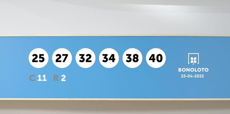 Los números agraciados en el sorteo de la Bonoloto del viernes 25 de abril de 2025 son los siguientes: 25, 27, 32, 34, 38, 40. El número complementario es el 11 y el reintegro el 2. En el sorteo de ayer hubo un acertante de primera categoría que se llevó más de 760.000 euros en Vitoria (Álava). Además hubo seis acertantes de segunda categoría que se llevaron casi 24.000 euros cada uno. El bote de hoy es la parte proporcional de la recaudación.