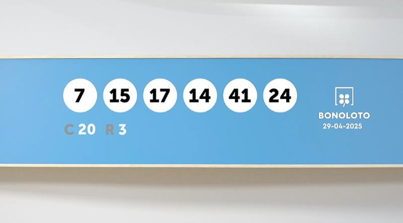 Los números agraciados en el sorteo de la Bonoloto del martes 29 de abril de 2025 son los siguientes: 7, 15, 17, 14, 41, 24. El número complementario es el 20 y el reintegro el 3. En el sorteo de ayer hubo un acertante de primera categoría que se llevó casi 900.000 euros, sorteo el cual se celebró la mañana del martes por el apagón. También hubo 44 acertantes de tercera categoría y ninguno de segunda. El bote de este martes es la parte proporcional de la recaudación.