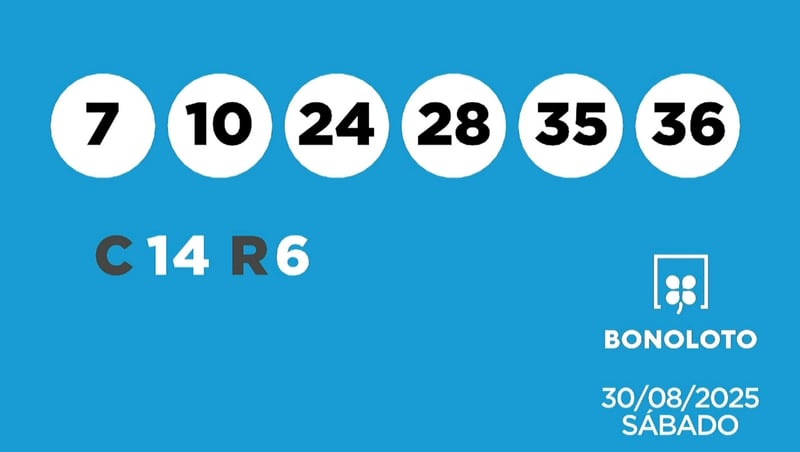 La Bonoloto ha repartido un nuevo premio. Los números agraciados en el sorteo de la Bonoloto de este sábado 30 de agosto de 2025 son los siguientes: 7, 10, 24, 28, 35, 36. El número complementario es el 14 y el reintegro el 6.