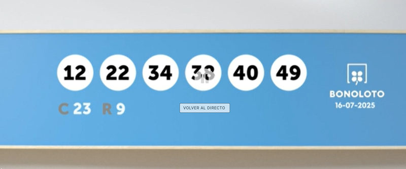 La Bonoloto ha repartido un nuevo premio. Los números agraciados en el sorteo de la Bonoloto de este miércoles 16 de julio de 2025 son los siguientes: 12, 22, 34, 38, 40 y 49. El número complementario es el 23 y el reintegro el 9.