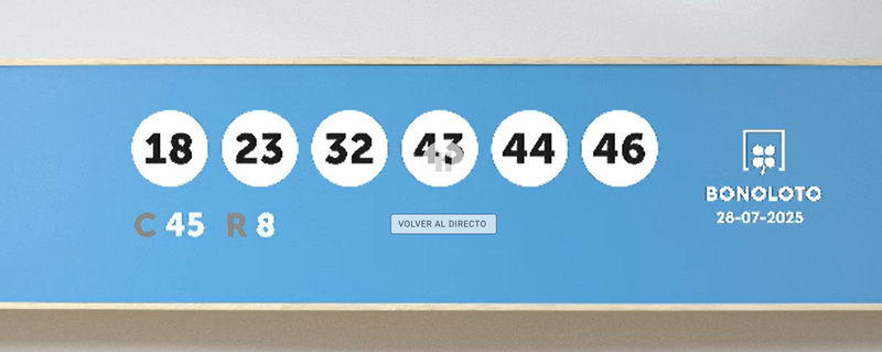 La Bonoloto ha repartido un nuevo premio. Los números agraciados en el sorteo de la Bonoloto de este lunes 28 de julio de 2025 son los siguientes: 18, 23, 32, 43, 44 y 46 . El número complementario es el 45 y el reintegro el 8