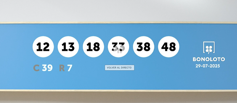 La Bonoloto ha repartido un nuevo premio. Los números agraciados en el sorteo de la Bonoloto de este martes 29 de julio de 2025 son los siguientes: 12, 13, 18, 33, 38 y 48 . El número complementario es el 39 y el reintegro el 7