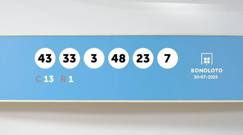 La Bonoloto ha repartido un nuevo premio. Los números agraciados en el sorteo de la Bonoloto de este miércoles 30 de julio de 2025 son los siguientes: 43, 33, 3, 48, 23 y 7 . El número complementario es el 13 y el reintegro el 1