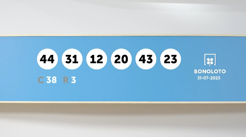 La Bonoloto ha repartido un nuevo premio. Los números agraciados en el sorteo de la Bonoloto de este jueves 31 de julio de 2025 son los siguientes: 44, 31, 12, 20, 43 y 23. El número complementario es el 38 y el reintegro el 3.