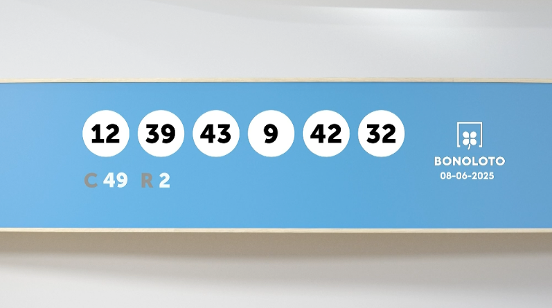Los números agraciados en el sorteo de la Bonoloto del domingo 8 de junio de 2025 son los siguientes: 12, 39, 43, 9, 42, 32. El número complementario es el 49 y el reintegro el 2. En el sorteo de ayer no hubo ningún acertante de primera ni de segunda categoría, pero sí que hubo 69 acertantes de tercera categoría que se llevaron más de 3.400 euros cada uno. El bote de hoy es de un 1.400.000 euros.