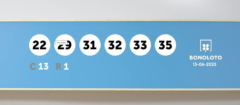 Los números agraciados en el sorteo de la Bonoloto del viernes 13 de junio de 2025 son los siguientes: 33, 31, 35, 22, 29, 32. El número complementario es el 13 y el reintegro el 1.