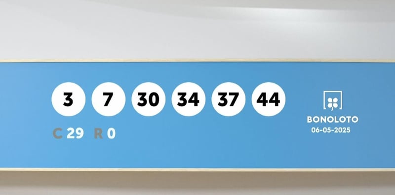 Los números agraciados en el sorteo de la Bonoloto del martes 6 de mayo de 2025 son los siguientes: 3, 7, 30, 34, 37, 44. El número complementario es el 29 y el reintegro el 0. En el sorteo de ayer no hubo acertantes de primera categoría, pero sí que hubo dos acertantes de segunda categoría que se llevaron un bote de 74.623,89 euros cada uno. Los premios fueron validados en Jerez de la Frontera (Cádiz) y en Forcarei (Pontevedra). El bote de hoy es de 1.800.000 de euros.