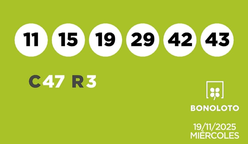 La Bonoloto ha repartido un nuevo premio. Los números agraciados en el sorteo de la Bonoloto de este miércoles 19 de noviembre de 2025 son los siguientes: 11, 15, 19, 29, 42, 43. El número complementario es el 47 y el reintegro el 3.