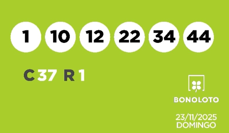 La Bonoloto ha repartido un nuevo premio. Los números agraciados en el sorteo de la Bonoloto de este domingo 23 de noviembre de 2025 son los siguientes: 1, 10, 12, 22, 34, 44. El número complementario es el 37 y el reintegro el 1.