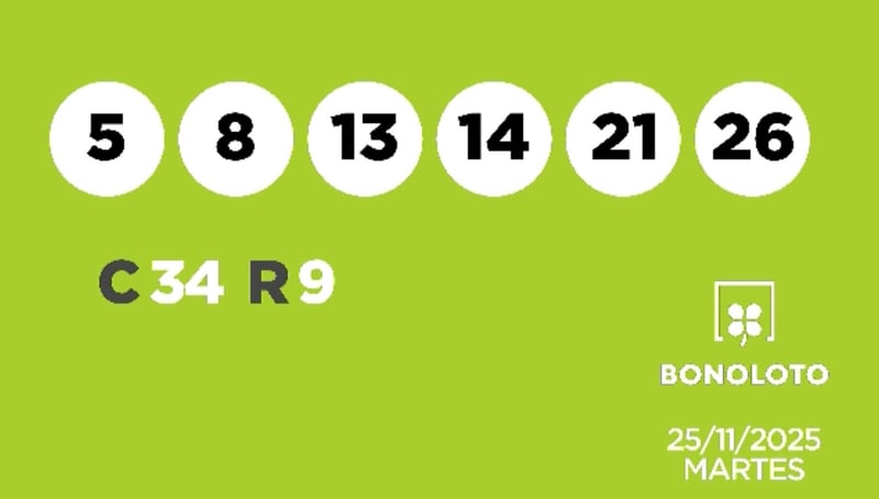 La Bonoloto ha repartido un nuevo premio. Los números agraciados en el sorteo de la Bonoloto de este martes 25 de noviembre de 2025 son los siguientes: 5, 8, 13, 14, 21, 26. El número complementario es el 34 y el reintegro el 9.