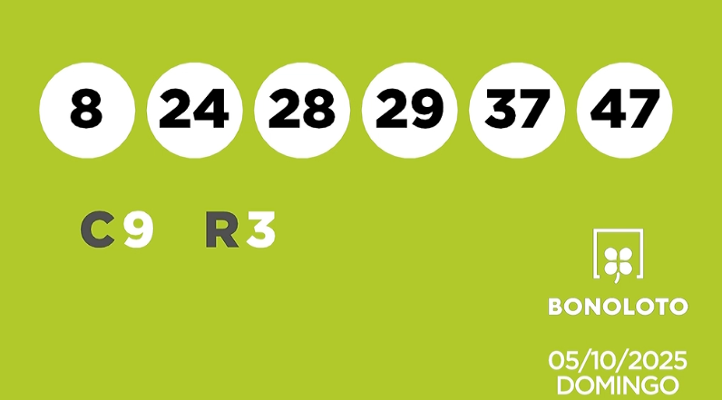 La Bonoloto ha repartido un nuevo premio. Los números agraciados en el sorteo de la Bonoloto de este domingo 5 de octubre de 2025 son los siguientes: 47, 28, 29, 37, 24, y 8. El número complementario es el 9 y el reintegro el 3.