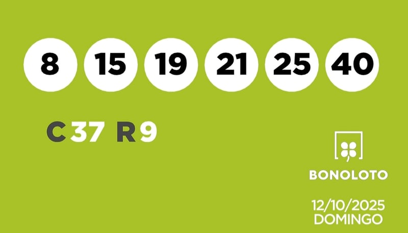 La Bonoloto ha repartido un nuevo premio. Los números agraciados en el sorteo de la Bonoloto de este domingo 12 de octubre de 2025 son los siguientes: 08, 15, 19, 21, 25, 40. El número complementario es el 37 y el reintegro el 009.