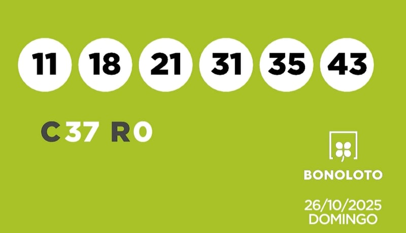 La Bonoloto ha repartido un nuevo premio. Los números agraciados en el sorteo de la Bonoloto de este domingo 26 de octubre de 2025 son los siguientes: 11, 18, 21, 31, 35, 43. El número complementario es el 37 y el reintegro el 0.