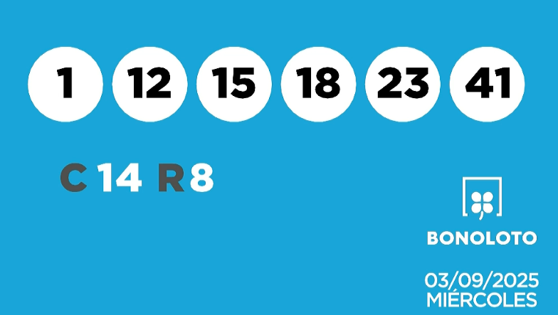 La Bonoloto ha repartido un nuevo premio. Los números agraciados en el sorteo de la Bonoloto de este miércoles 3 de septiembre de 2025 son los siguientes: 41, 23, 15, 12, 18 y 1. El número complementario es el 14 y el reintegro el 8.