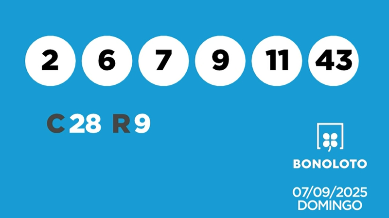 La Bonoloto ha repartido un nuevo premio. Los números agraciados en el sorteo de la Bonoloto de este viernes 7 de septiembre de 2025 son los siguientes: 2, 6, 7, 9, 11 y 43. El número complementario es el 28 y el reintegro el 9.