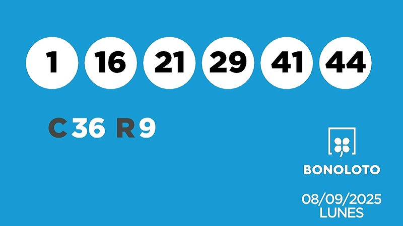 La Bonoloto ha repartido un nuevo premio. Los números agraciados en el sorteo de la Bonoloto de este lunes 8 de septiembre de 2025 son los siguientes: 1, 16, 21, 29, 41 y 44 . El número complementario es el 36 y el reintegro el 9.