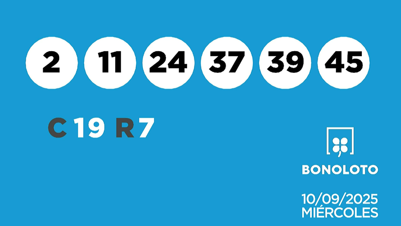 La Bonoloto ha repartido un nuevo premio. Los números agraciados en el sorteo de la Bonoloto de este miércoles 10 de septiembre de 2025 son los siguientes: 2, 11, 24, 37, 39 y 45 . El número complementario es el 19 y el reintegro el 7.
