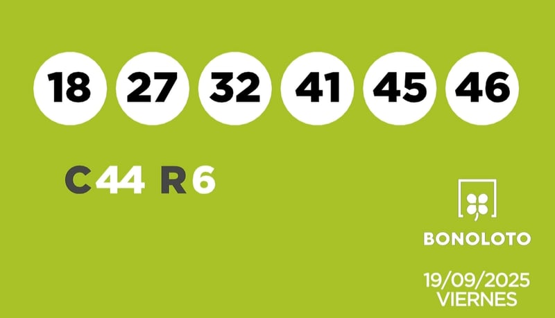 La Bonoloto ha repartido un nuevo premio. Los números agraciados en el sorteo de la Bonoloto de este viernes 19 de septiembre de 2025 son los siguientes: 18, 27, 32, 41, 45, 46. El número complementario es el 44 y el reintegro el 6.
