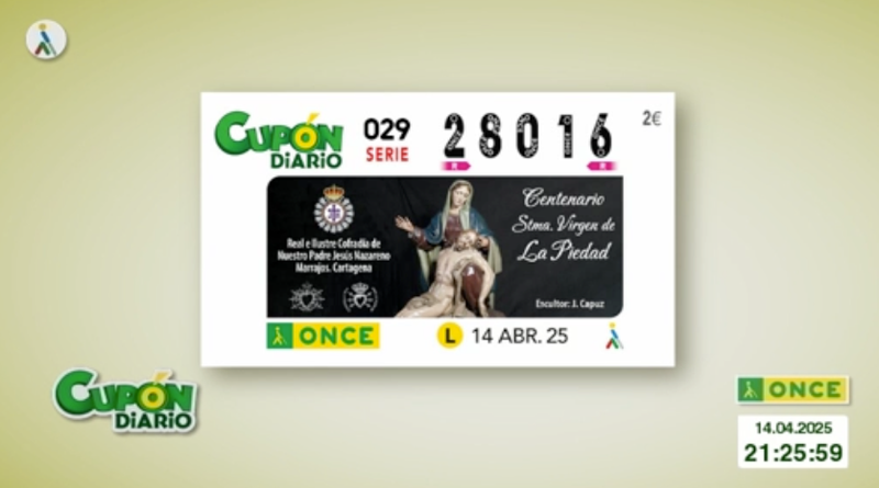 El sorteo del Cuponazo de la ONCE correspondiente al lunes 14 de abril de 2025, que tuvo como número premiado el 28016, con la serie correspondiente al 029. Todos los resultados al completo, tanto de hoy como de fechas anteriores, los podrás ver en la web de ESTADIO Deportivo, siendo recomendable su comprobación también en los canales oficiales de la ONCE.