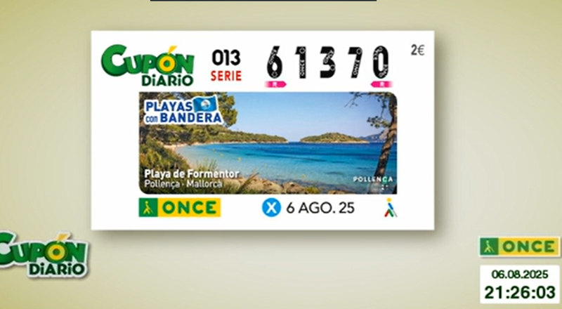 El sorteo del Cupón Diario de la ONCE correspondiente al miércoles 6 de agosto de 2025 ha tenido como número premiado el 61370, con la serie correspondiente al 013. Todos los resultados al completo, tanto de hoy como de fechas anteriores, los podrás ver en la web de ESTADIO Deportivo, siendo recomendable su comprobación también en los canales oficiales de la ONCE.