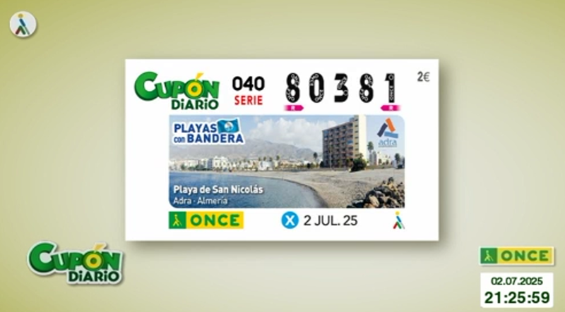 El sorteo del Cupón Diario de la ONCE correspondiente al miércoles 2 de julio de 2025, que tuvo como número premiado el 80.381, con la serie correspondiente al 040. Todos los resultados al completo, tanto de hoy como de fechas anteriores, los podrás ver en la web de ESTADIO Deportivo, siendo recomendable su comprobación también en los canales oficiales de la ONCE.