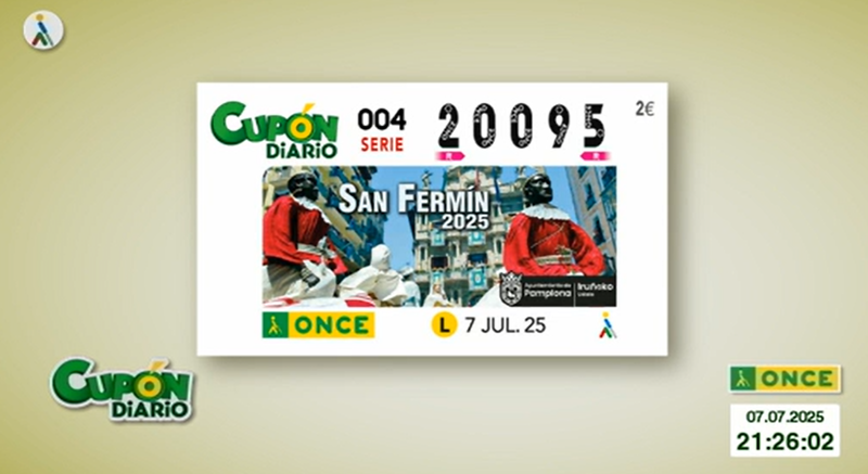 El premio en este nuevo inicio de semana ha sido para el número 20095 de la serie 004. Con un boleto en el que destacan las fiestas de San Fermín, que ha dado inicio este mismo lunes con el día de este Santo.
